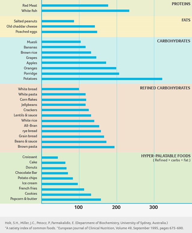 Here’s a chart that shows all the foods they tested and how they ranked for inducing satiety and controlling hunger: