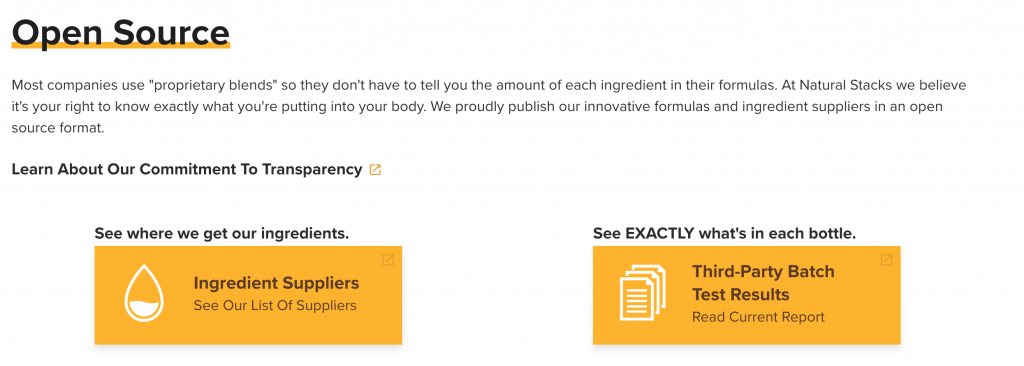 And, like always, I was very skeptical. But I love the fact that they have a customer review section for each supplement as well as the science they use to formulate each product. They also started something called the Open Source Initiative to create more transparency in supplement companies—a quality that’s lacking in the supplement business. Part of the open source initiative is that Natural Stacks posts their 3rd part test batch results so you can see exactly what’s in each bottle you buy.